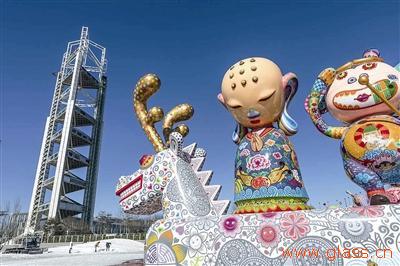 在奧林匹克公園亮相的是一組以名著《西游記》師徒四人為原型的大型彩雕,內容包括長達8米的白龍馬,其上載著唐三藏、孫悟空、豬八戒、沙悟凈,高度超過3米;在地壇公園亮相的則是一只4米巨型不銹鋼烤漆作品“馬上封侯”,既應景又喜氣。