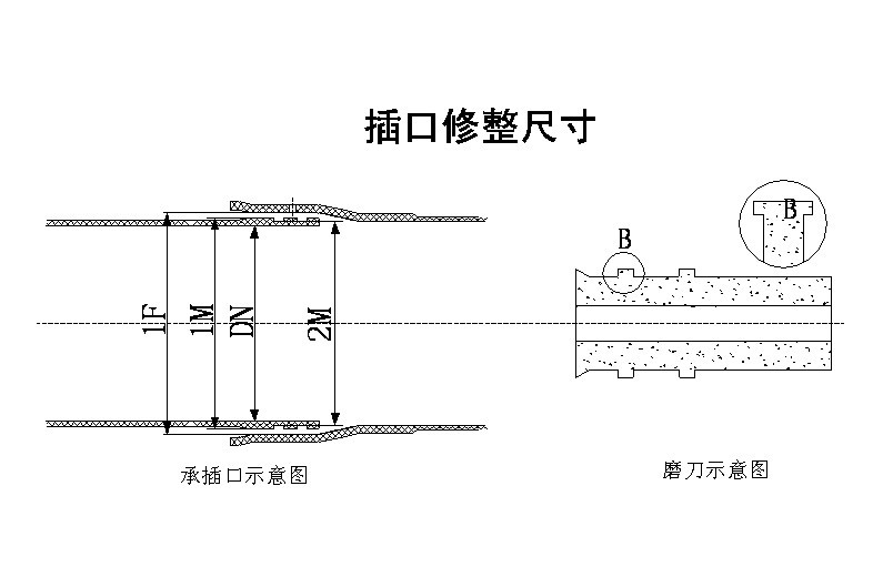 磨刀 (Φ130)凸輪 B特性 | 公稱直徑 DN | 模具外徑 1F(不含薄膜) | 標(biāo)準(zhǔn)承插口直徑配合間隙(mm) | 插口外徑1M (不含石臘樹脂 ) | 插口溝槽外徑2M (不含石臘樹脂) | 承插口 直徑 配合間隙修整范圍 | 插口溝槽修整周長( Q 為模具承口無薄膜時(shí)的實(shí)測周長) | “ O”型密封圈內(nèi)徑 A | 密封圈截面直徑 B |